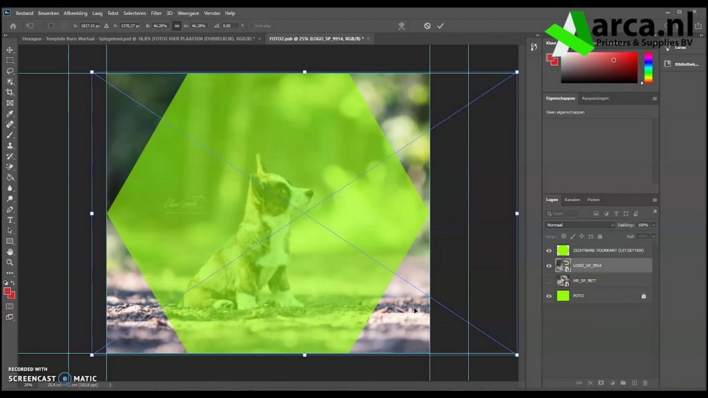 Begin met het downloaden van de template voor Photoshop. Open het programma en plaats uw foto in de template. Doordat de template al precies op de juiste maat is en door middel van een groene preview laag aangeeft hoe het resultaat er uit komt te zien, kan het eigenlijk nooit fout gaan.