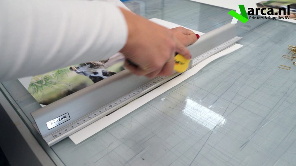 Om mooie rechte lijnen te krijgen gebruiken we een aluminium snij liniaal met anti sliplaag wat zorgt voor een goede grip en bescherming van de vingers. Gebruik ook een goede ondergrond om op te snijden. Wij gebruiken altijd een professionele snijmat van Zenith. De snijmatten zijn er in verschillende maten, van klein tot groot.
