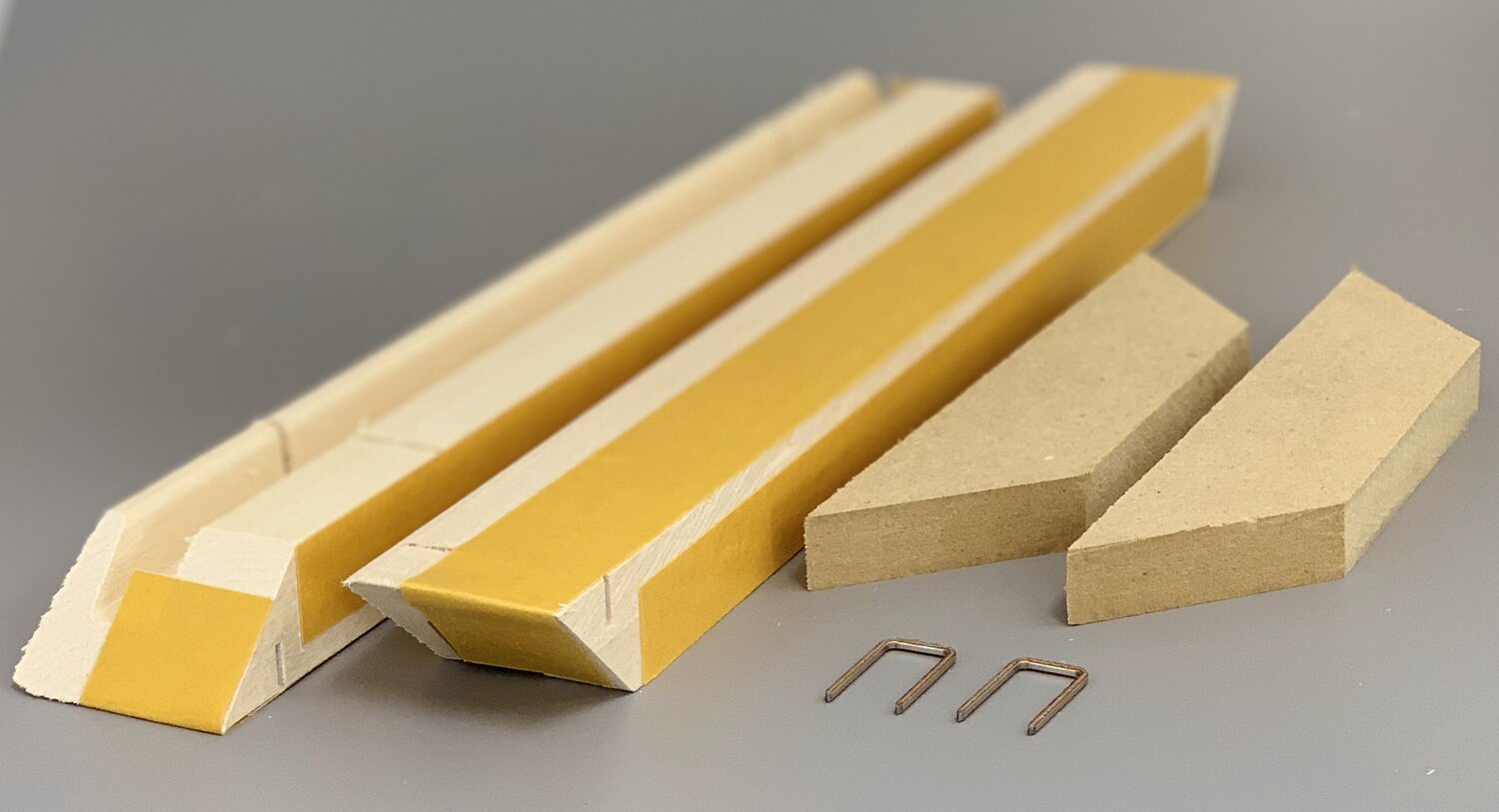 Met de Goframe hoekenset positioneert u de hoeken als een zeshoek, waar u de latjes met kleeflaag tussen kunt bevestigen. Druk de latjes even goed aan, om ze in de hoeken aan te laten sluiten. Trek nu voorzichtig de strips van de kleeflaag af, zodat het frame gereed is om te positioneren.