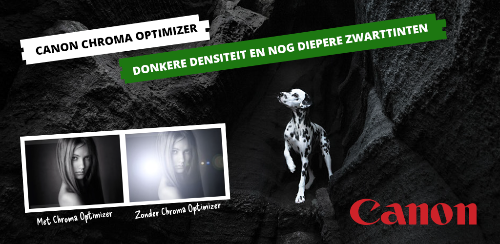 De voor Canon unieke Chroma Optimiser (CO) zorgt voor een donkere densiteit en voor nog diepere zwarttinten. Ideaal voor fine art prints, fotografie, galerieproducties en hoogwaardige proofing. Chroma Optimiser geeft het oppervlak een doorzichtige laag voor verbeterde zwarttinten en natuurgetrouwe kleuren. Het verbetert ook de uniformiteit en glans van foto’s en onderdrukt het bronzing-effect.